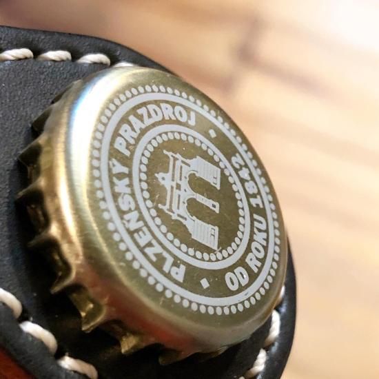 掲載している写真はキャップのみになりますが、お届け時には王冠キーホルダーとして完成させた状態で納品させていただきます。組み合わせる牛革のカラーもブラック・キャメルからお選び下さい。完成時のサイズや雰囲気はレギュラーアイテムの「ボトルキャップキーリング」と同様の仕上がりになります。