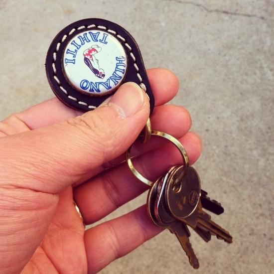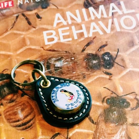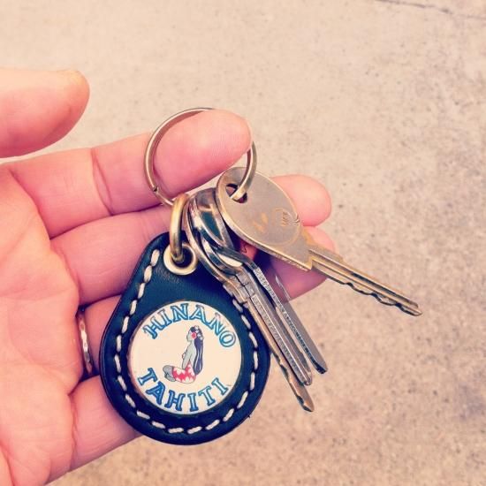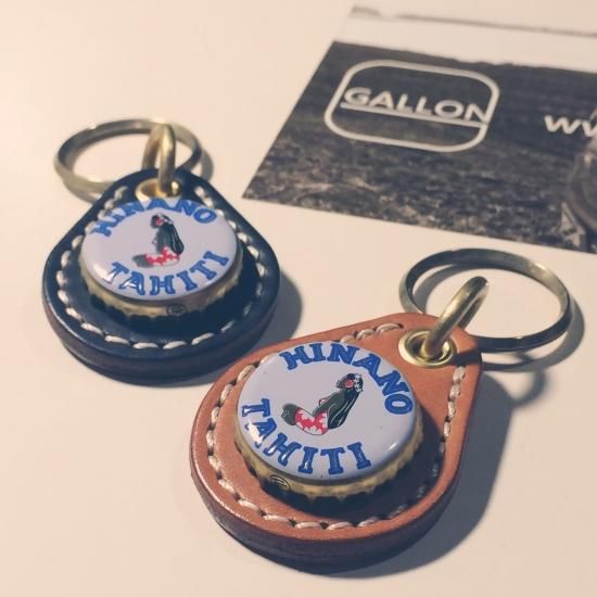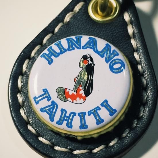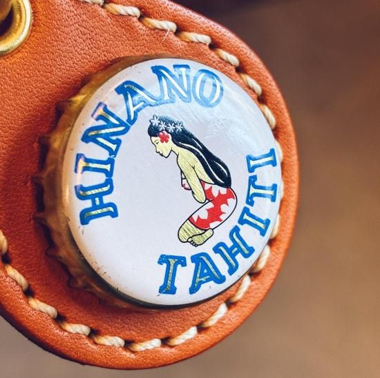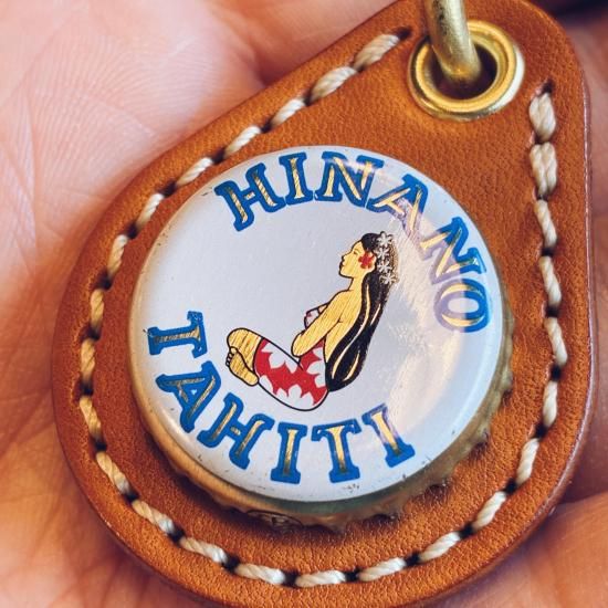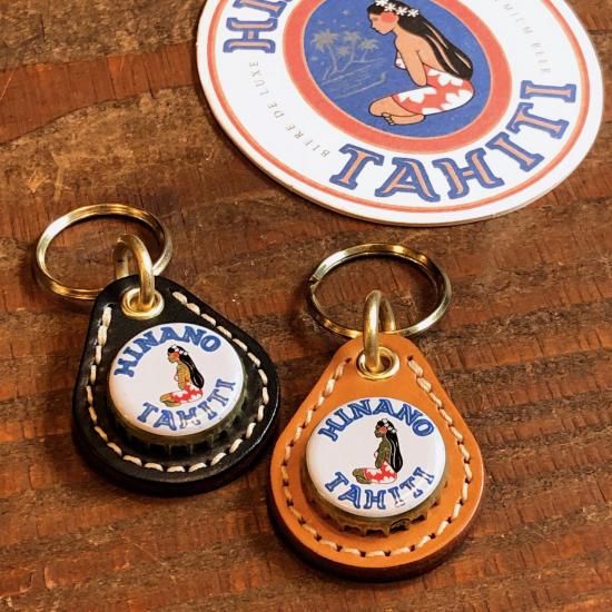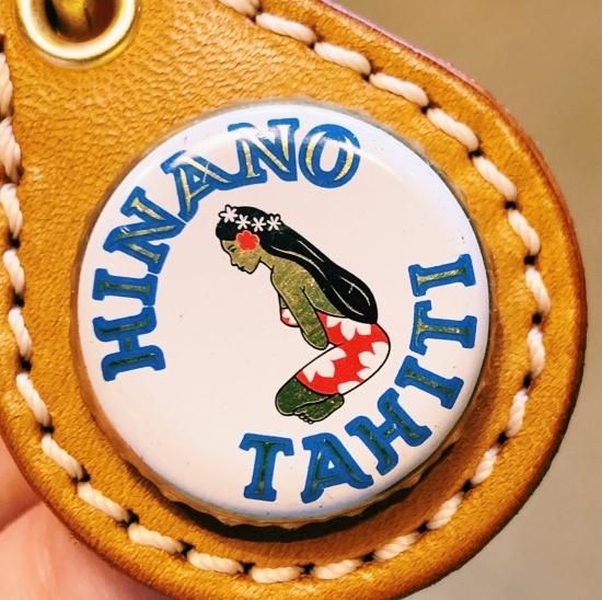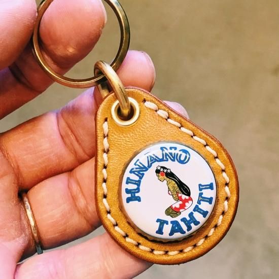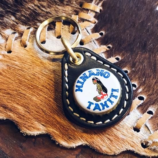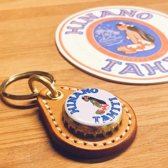 可愛いロゴのタヒチ島のビール。そのヒナノビールの蓋に独自の加工を施し、上質オイルレザーと組み合わせたキーリング。リングに鍵を通してキーホルダーとして使えるので、自転車やバイク、車などの鍵の他、家の鍵などを取り付けて遊んで欲しい商品です。