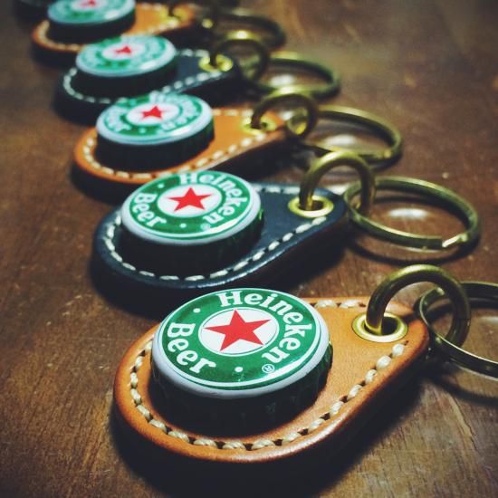 世界で愛され続けるオランダのビールブランド、ハイネケン。そのハイネケンビールの蓋に独自の加工を施し、上質オイルレザーと組み合わせたキーリング。リングに鍵を通してキーホルダーとして使えるので、自転車やバイク、車などの鍵の他、家の鍵などを取り付けて遊んで欲しい商品です。