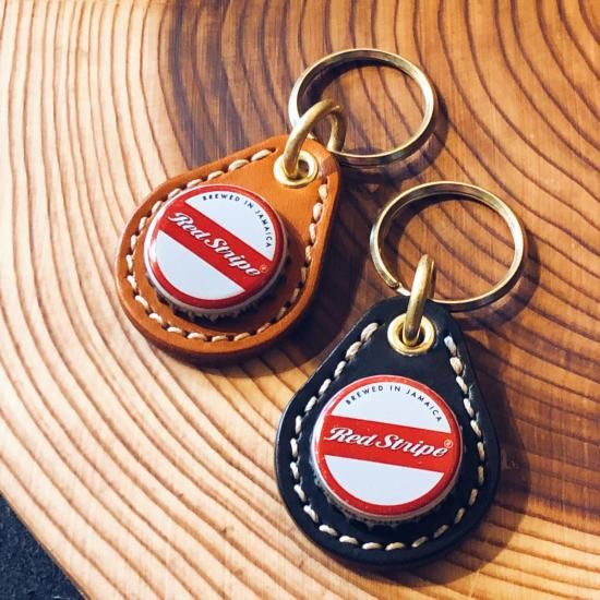 掲載している写真はキャップのみになりますが、お届け時には王冠キーホルダーとして完成させた状態で納品させていただきます。組み合わせる牛革のカラーもブラック・キャメルからお選び下さい。完成時のサイズや雰囲気はレギュラーアイテムの「ボトルキャップキーリング」と同様の仕上がりになります。