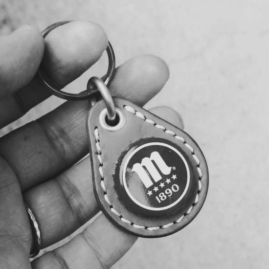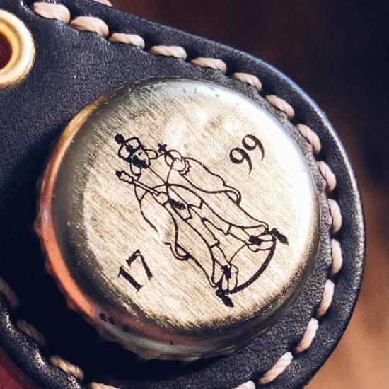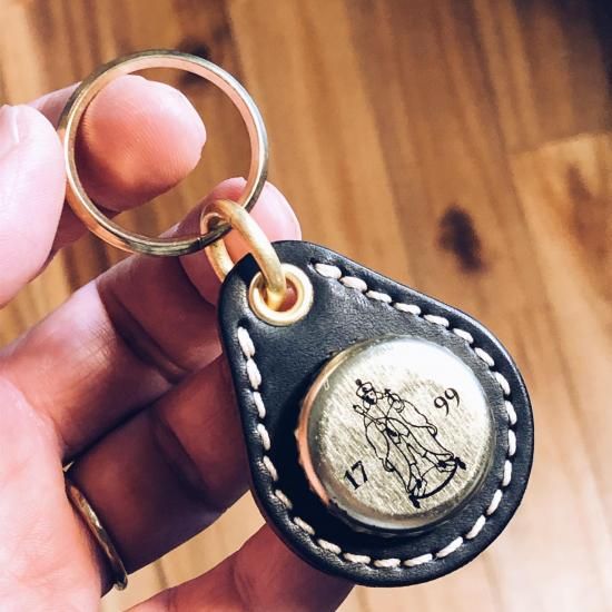 イギリスの歴史あるアボットエール。そのアボットエールの蓋に独自の加工を施し、上質オイルレザーと組み合わせたキーリング。リングに鍵を通してキーホルダーとして使えるので、自転車やバイク、車などの鍵の他、家の鍵などを取り付けて遊んで欲しい商品です。
