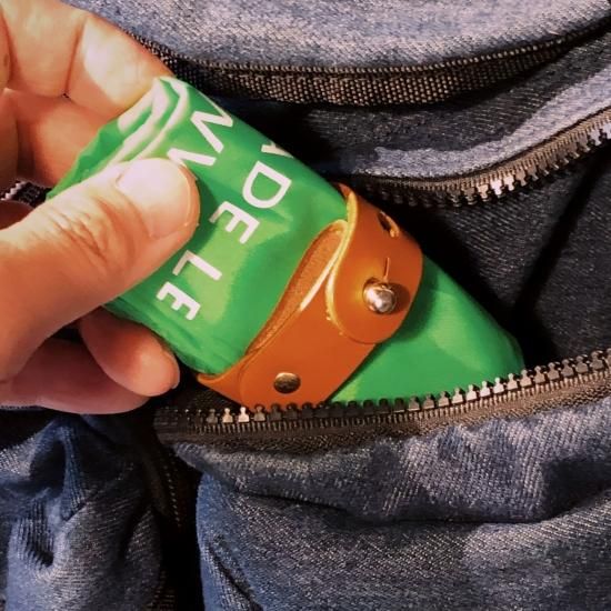別売りのトートバッッグホルダーは2タイプを用意しました。気軽に持ち歩けるよう製作した「バンドタイプ」と、カバンやリュックなどに取り付ける事が可能な「ハングタイプ」を販売しております。メインでお使いの鞄やリュックの中にレザーホルダーでまとめたトートバッグを入れておくと、急なお買い物やレジ袋変わりにもなり非常に便利です。普段手ぶらで移動することが多いと言う方も、コンパクトに収納されたトートをポケットに忍ばせておけば、エコバッグ代わりに使えるので安心だと思います。