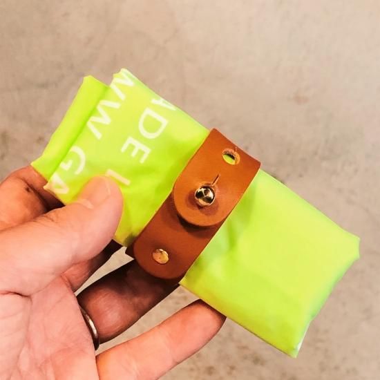 別売りのトートバッッグホルダーは2タイプを用意しました。気軽に持ち歩けるよう製作した「バンドタイプ」と、カバンやリュックなどに取り付ける事が可能な「ハングタイプ」を販売しております。メインでお使いの鞄やリュックの中にレザーホルダーでまとめたトートバッグを入れておくと、急なお買い物やレジ袋変わりにもなり非常に便利です。普段手ぶらで移動することが多いと言う方も、コンパクトに収納されたトートをポケットに忍ばせておけば、エコバッグ代わりに使えるので安心だと思います。