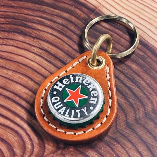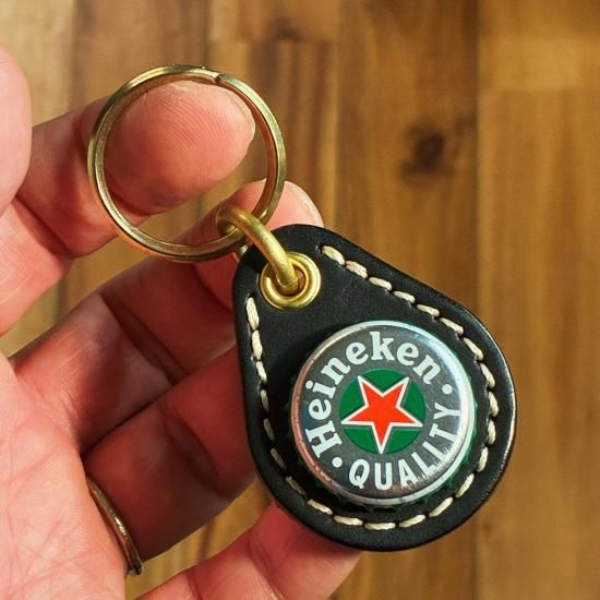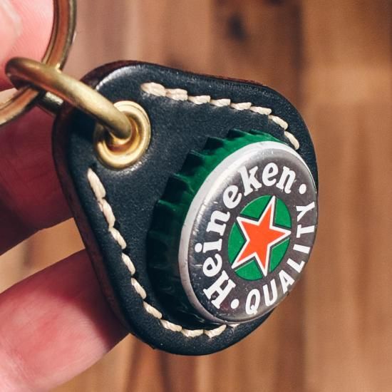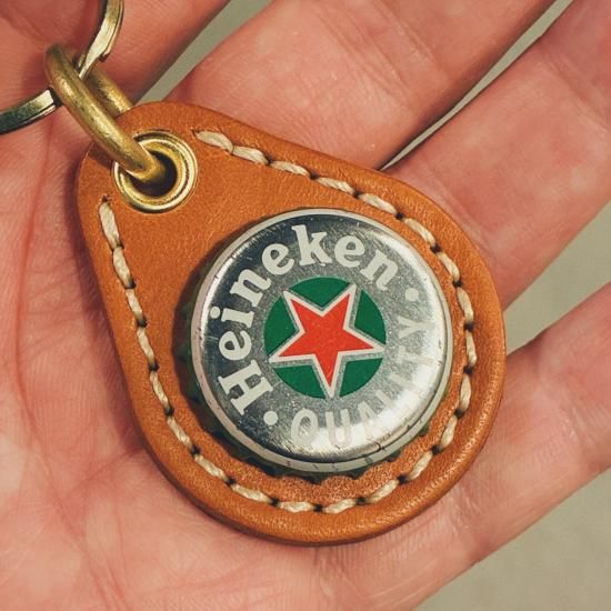 世界で愛され続けるオランダのビールブランド、ハイネケン。そのハイネケンビールの蓋に独自の加工を施し、上質オイルレザーと組み合わせたキーリング。リングに鍵を通してキーホルダーとして使えるので、自転車やバイク、車などの鍵の他、家の鍵などを取り付けて遊んで欲しい商品です。