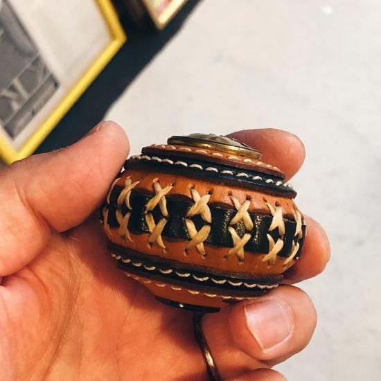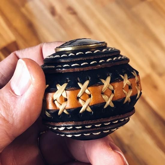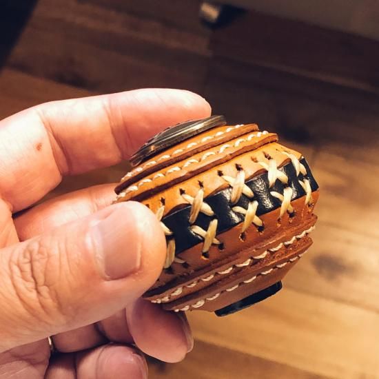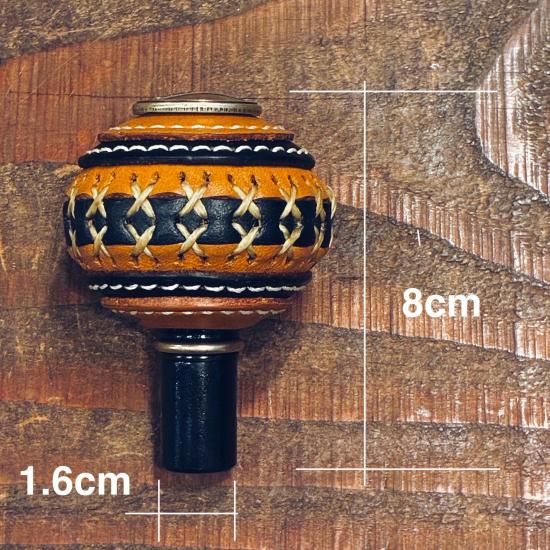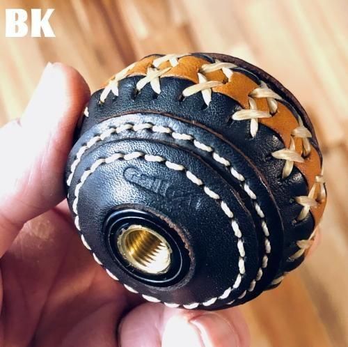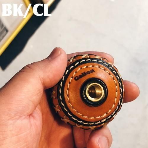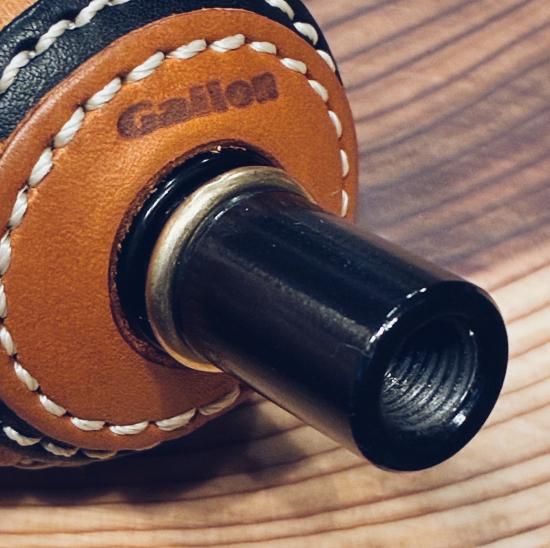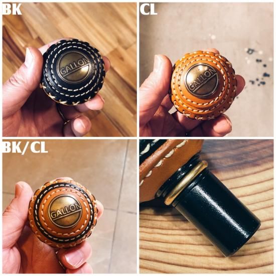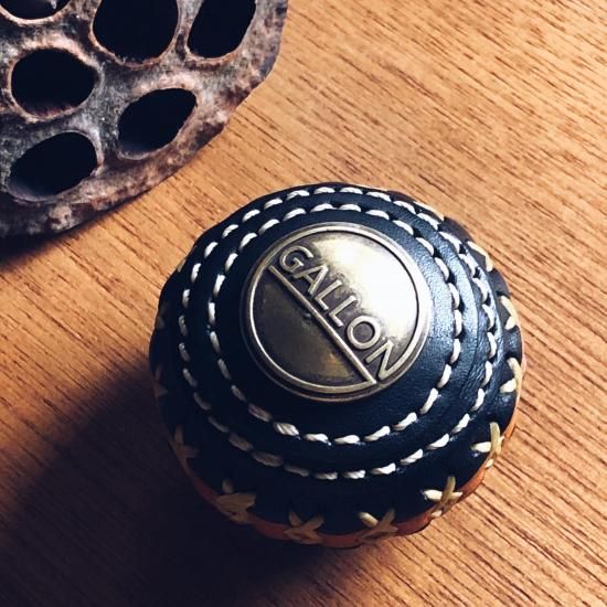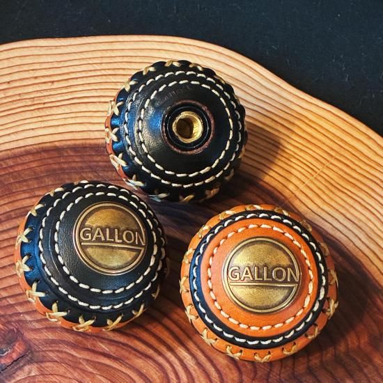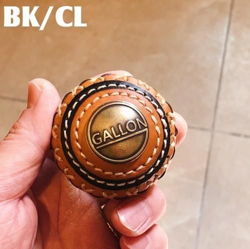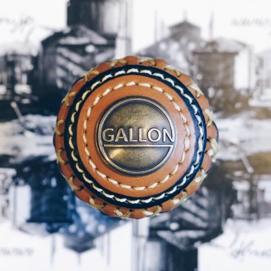 ステアハイドオイルレザーを使用し、ハンドメイドで製作したレザーシフトノブ。1点1点丁寧に成形しながら、ベースとなるノブをすっぽりと包み込んだオリジナルデザインです。裏面にはさりげなくGALLONの焼印を押しました。