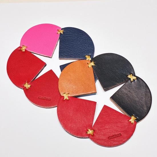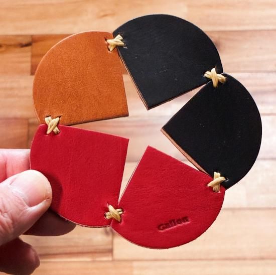本革で製作したオリジナルのコースターで、10年以上製作し続けている人気アイテムになります。ご自宅で使われる方だけでなく、引越し祝いや新築祝いなどに贈られる方も多いので、専用ギフトボックスもご用意しております。