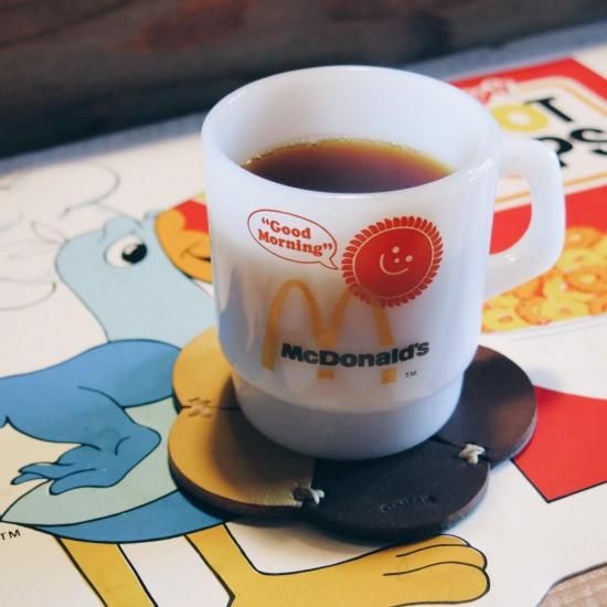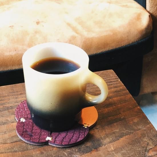 もちろん工房でも使用しています。製作当初は使用するマグカップに合わせてコースターの色を選ぼうかと思っていたんですが、実際は組み合わせを気にせず違和感なく使えてしまいました。そんな不思議なデザインです。ご自宅用として家族で使えるアイテムですが、予想以上に結婚祝いや新築祝いなどのプレゼントとして選ばれる方も多く、何より結構喜んでいただけます。