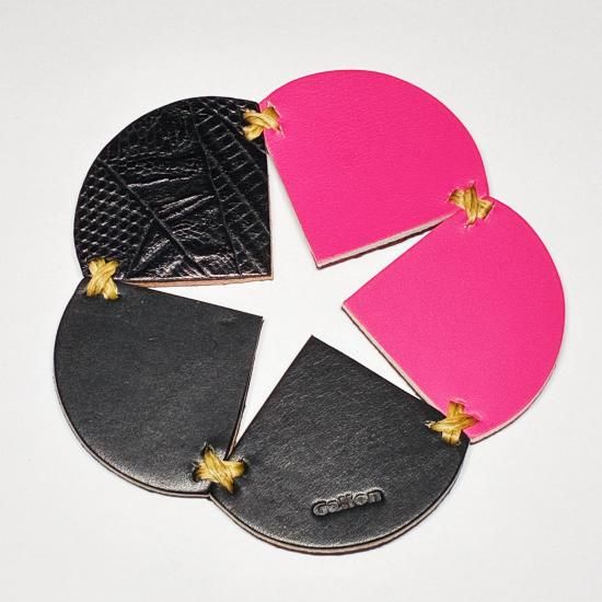 レザーコースター / ブラック×ピンク×エンボスブラック