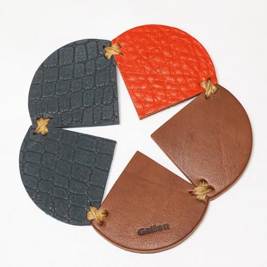 本革で製作したオリジナルのコースターで、10年以上製作し続けている人気アイテムになります。ご自宅で使われる方だけでなく、引越し祝いや新築祝いなどに贈られる方も多いので、専用ギフトボックスもご用意しております。