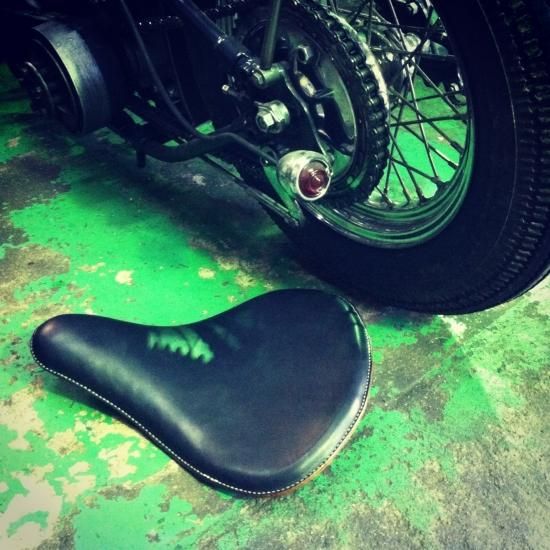 鉄板シートベースに、ステアハイドオイルレザーを贅沢に張り合わせた、バイク用のソロシートです。