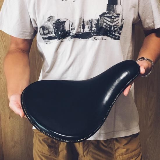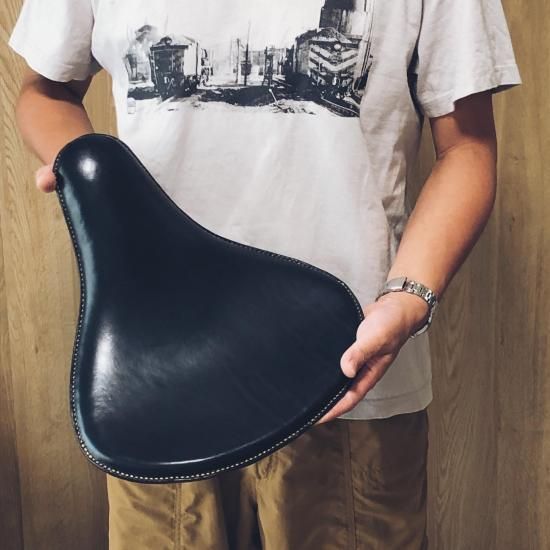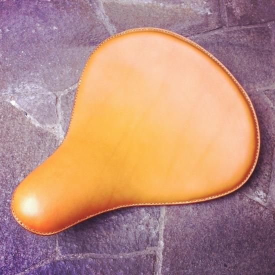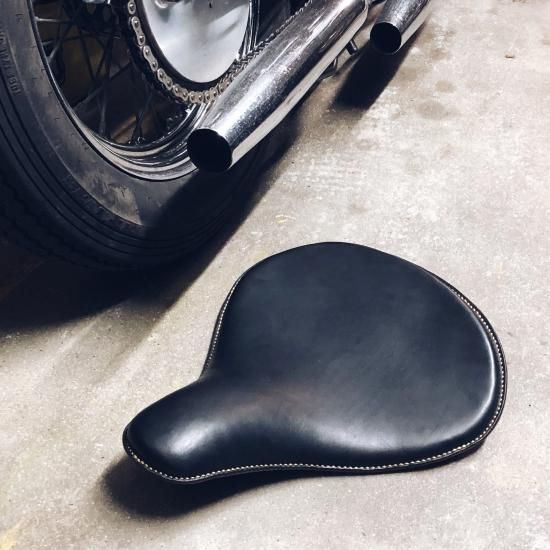 チョッパーやボバーなど、カスタムバイクに最適な牛革製サドルシートです。