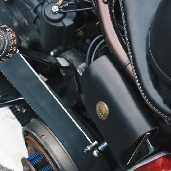 バイクの見た目を損なわない汎用タイプのレザーポーチ